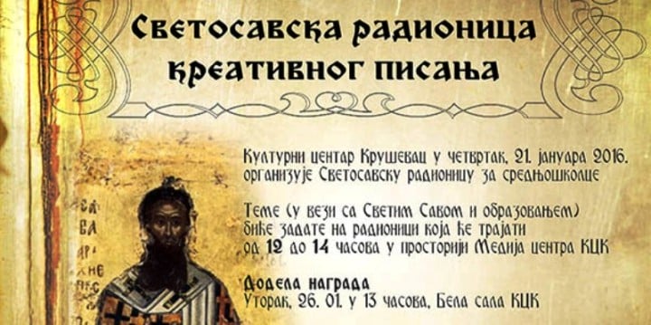 U Medija centru Kulturnog centra Kruševac sutra u 12 sati biće organizovana Svetosavska radionica kreativnog pisanja za učenike srednjih škola.