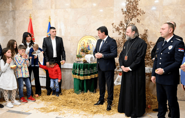 Lomljenje česnice ispred crkve Svetih apostola Filimona i Onisima u VP domu Kruševac