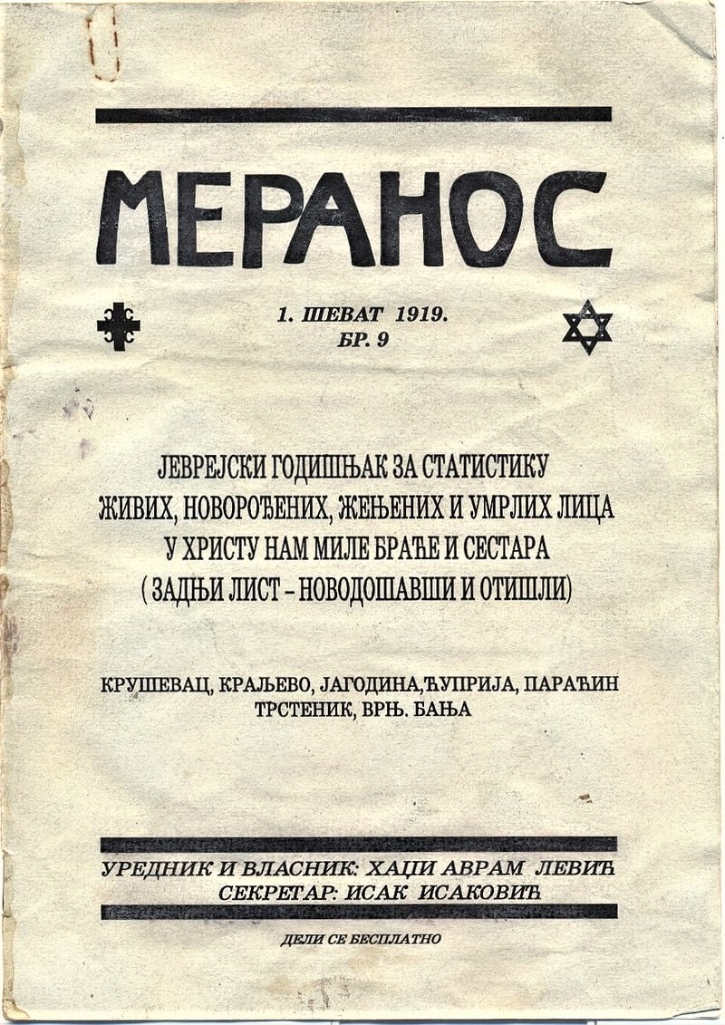 – Do početka Drugog svetskog rata u Srbiji je izlazilo 47 časopisa, uključujući i dosta specifičan Meranos, koji su 1907. pokrenuli i izdavali Jevreji iz Kruševca i okoline, koji su sticajem političkih i privrednih okolnosti sredinom i u drugoj polovini 19. veka prešli u pravoslavlje – rekla je Biljana Albahari.