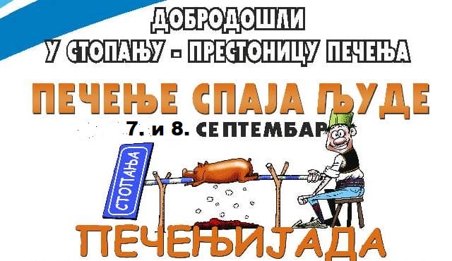U Stopanji se ovog vikenda održava jedna od najpopularnijih gurmansko-estradnih manifestacija u našem kraju, „Pečenijada“, koja po pravilu privuče oko 20.000 posetilaca koji uživaju u mirisima i ukusima svežeg i vrućeg pečenja, ali i atraktivnom kulturno-umetničkom i sportskom programu.