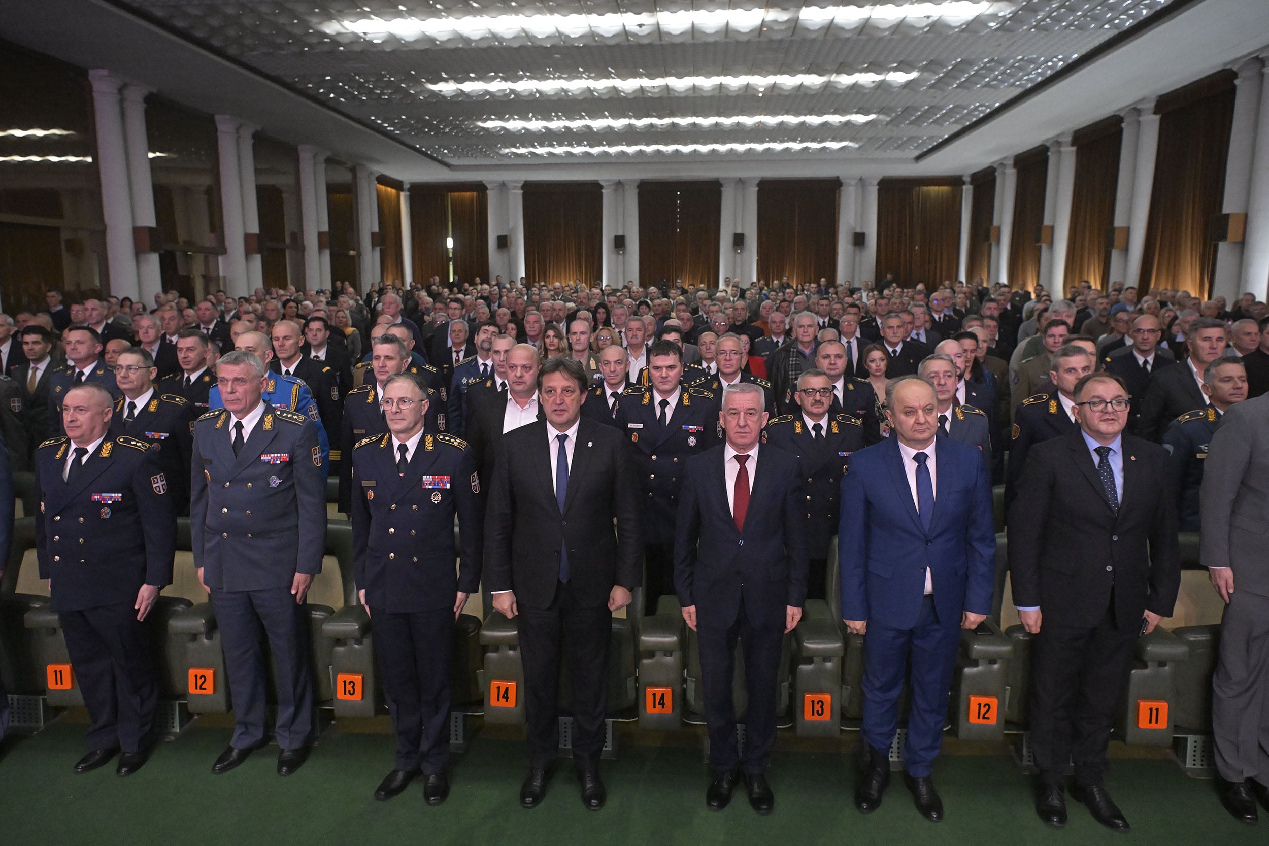 Današnjoj svečanosti prisustvovali su članovi kolegijuma ministra odbrane i načelnika Generalštaba, predstavnici Ministarstva odbrane i Vojske Srbije, predstavnici Ministarstva za rad, zapošljavanje, boračka i socijalna pitanja, zatim vojni veterani i porodice poginulih pripadnika vojske, predstavnici vojnodiplomatskog kora, verskih zajednica i tradicionalnih i veteranskih udruženja.